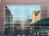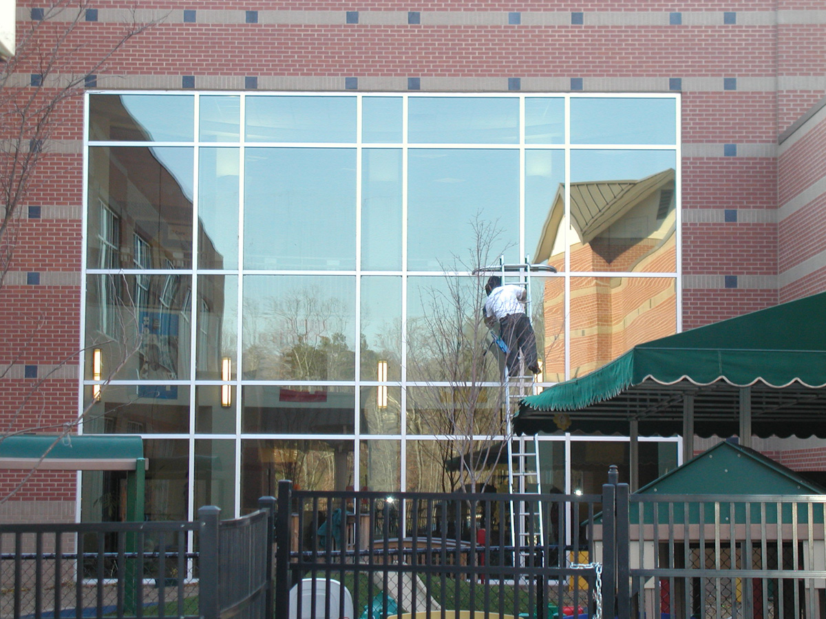 γυάλινες προσόψεις, αίθρια, επιγραφές και πάνελ αλουμινίου.
